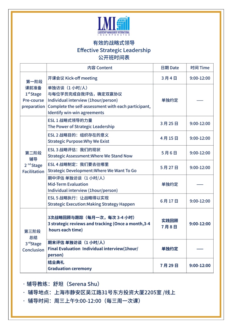 LMI 课程日期