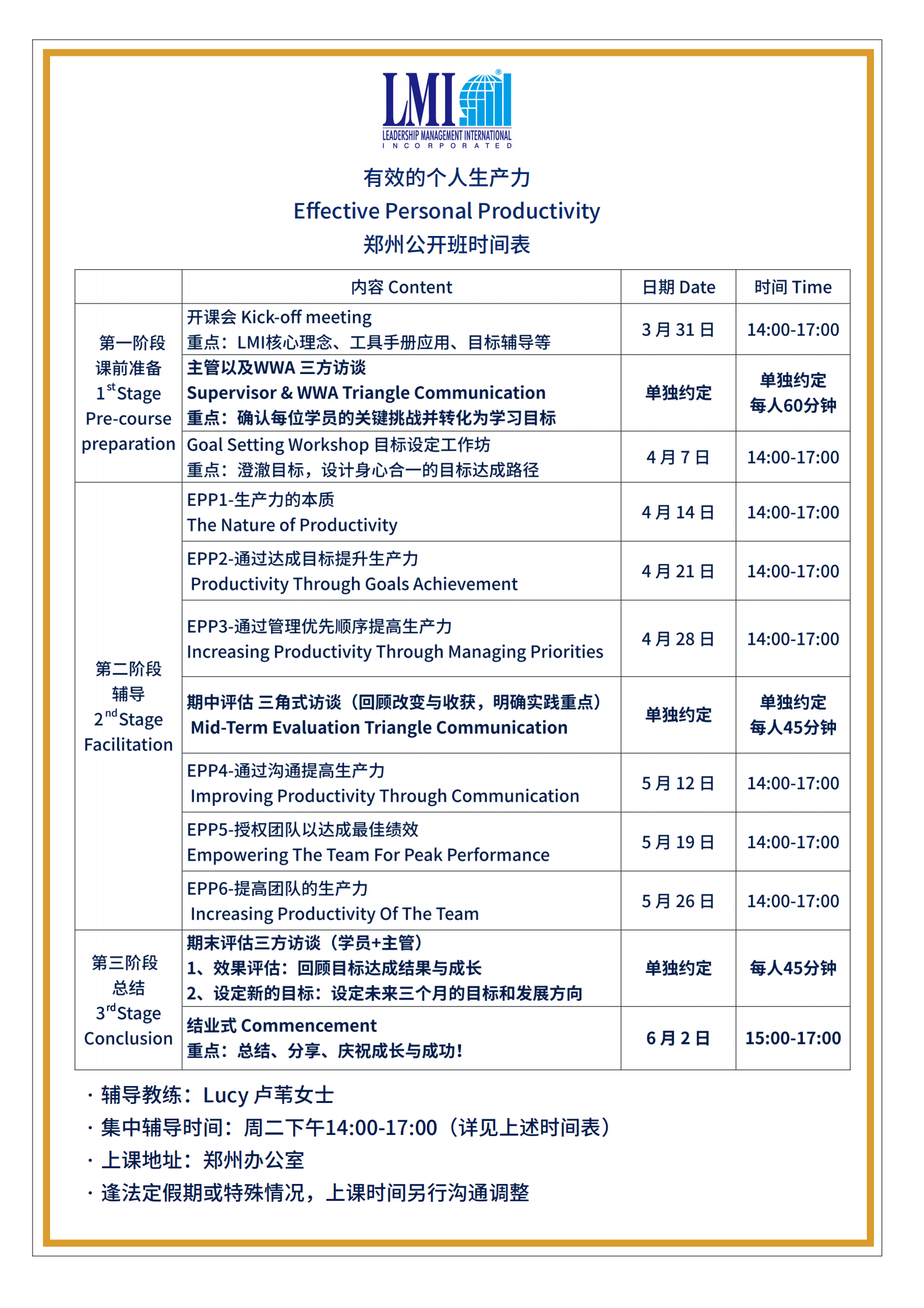LMI 课程日期