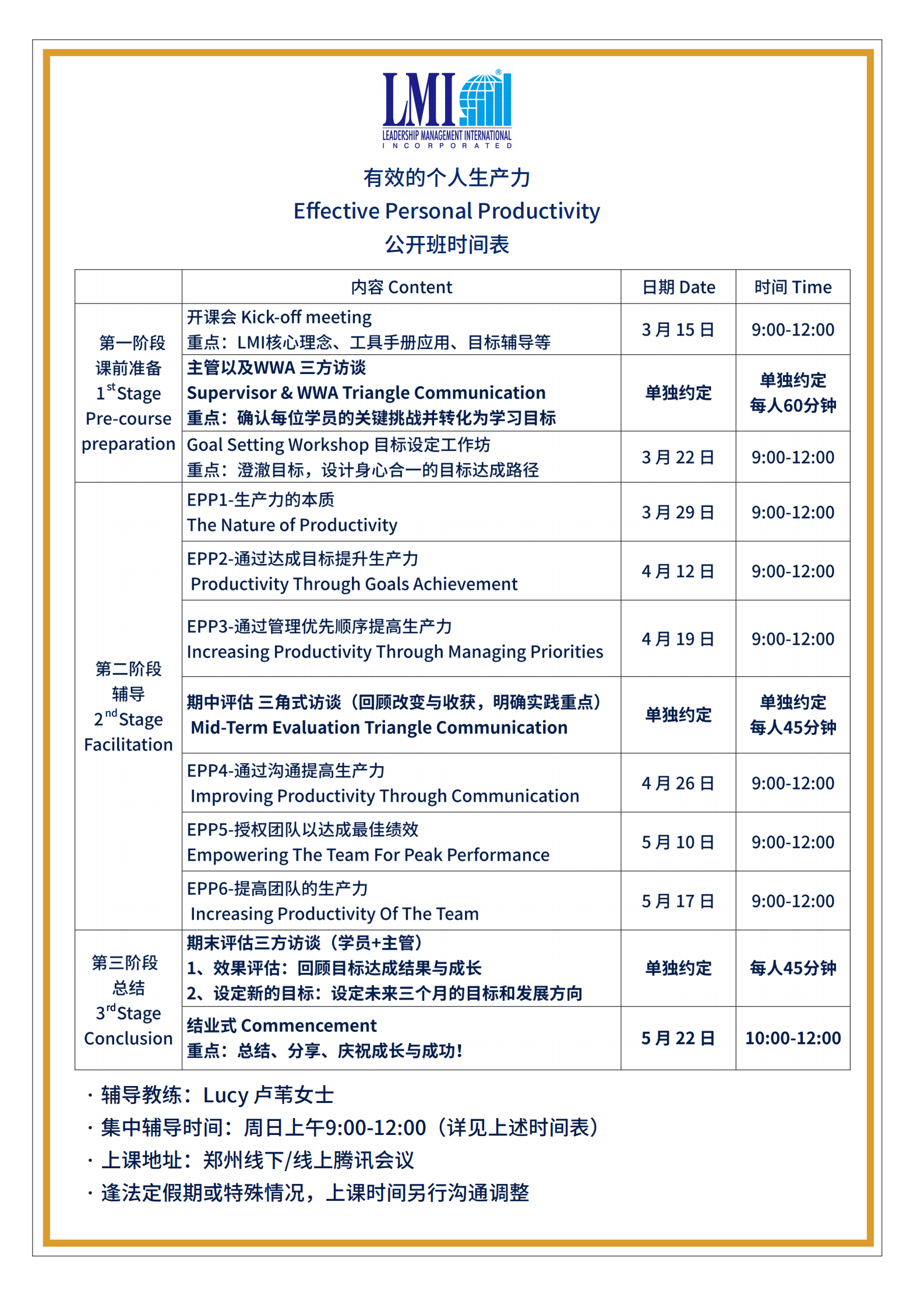 LMI 课程日期