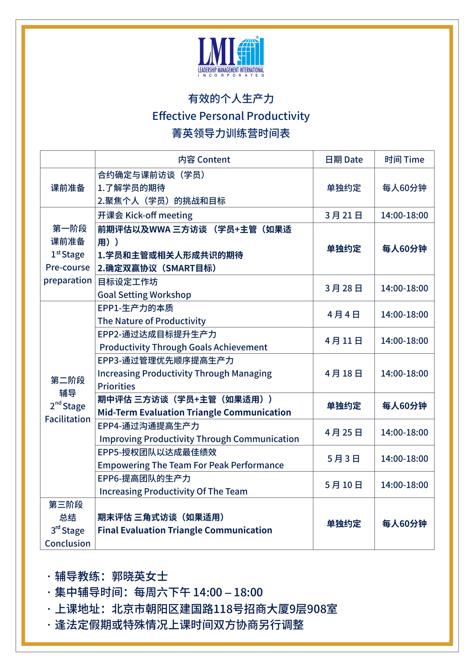 LMI 课程日期