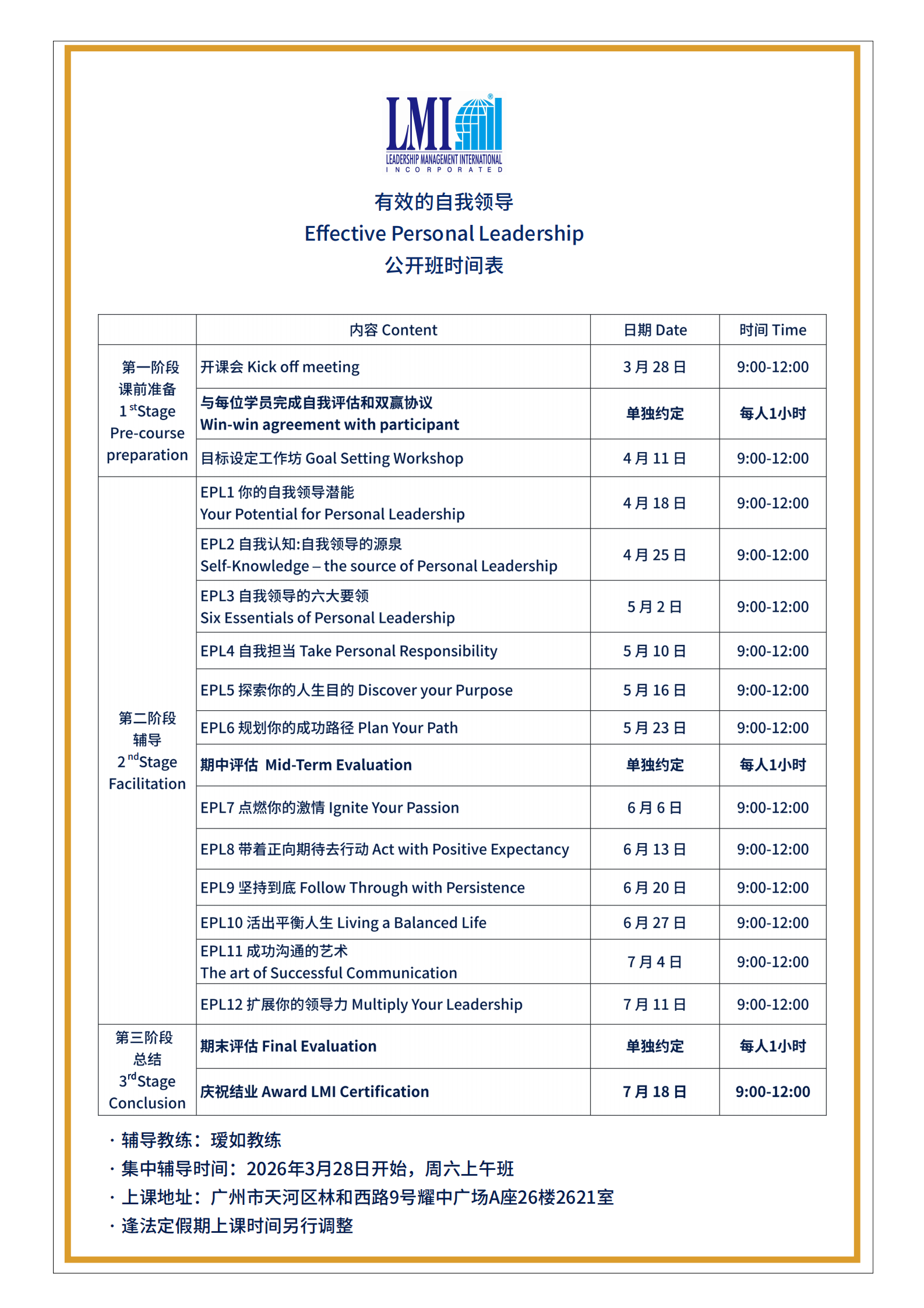 LMI 课程日期