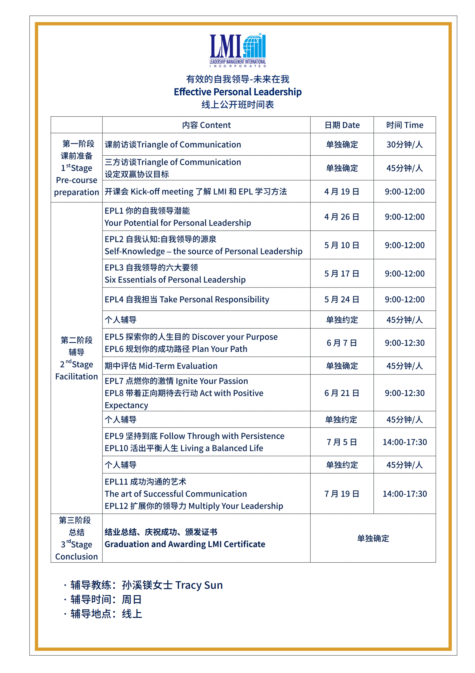 LMI 课程日期