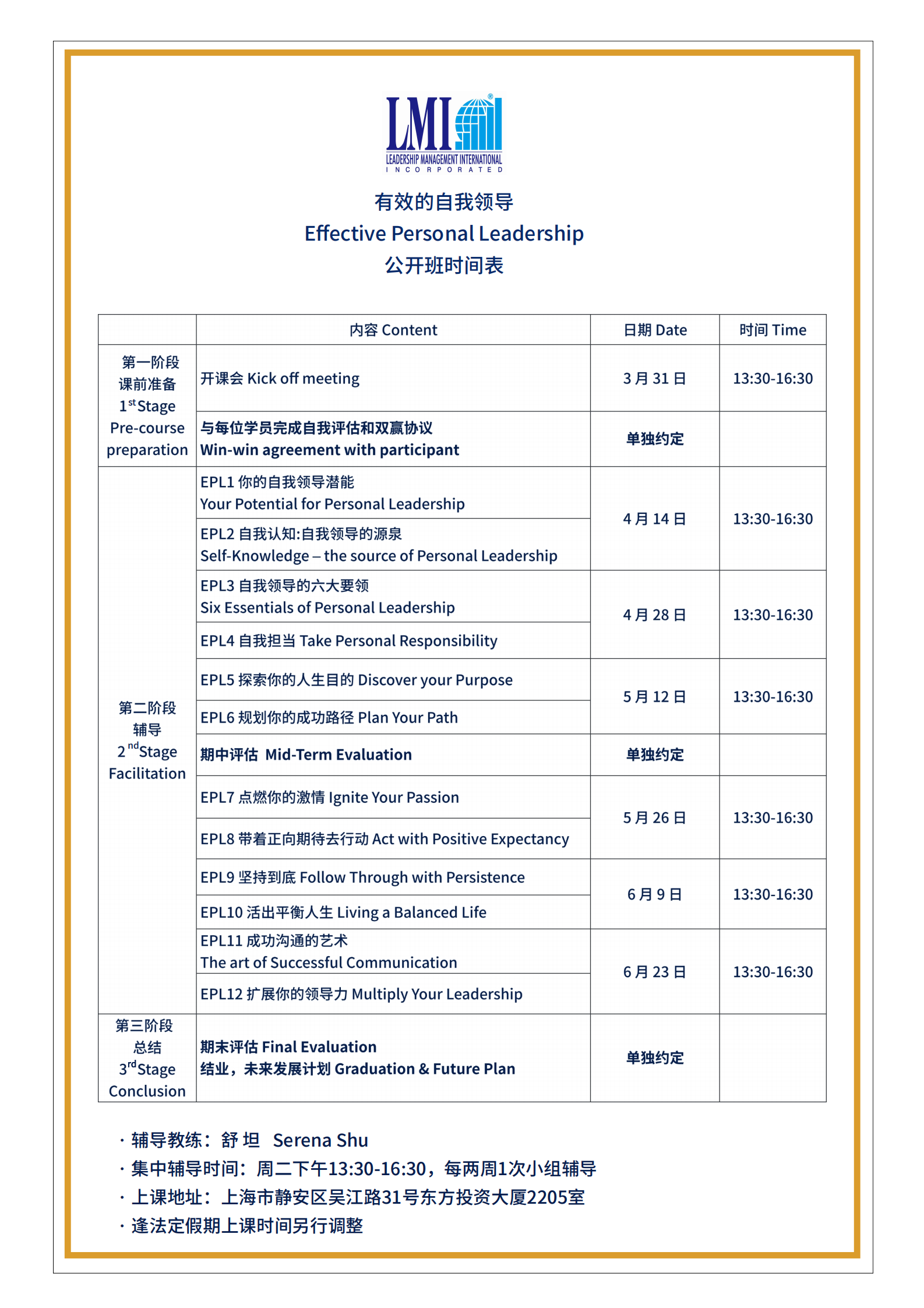 上海 2026年3月31日(二)EPL公开班