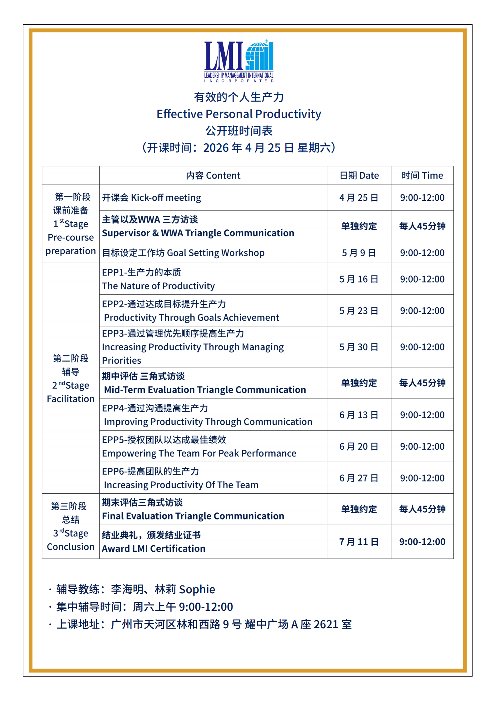 LMI 课程日期