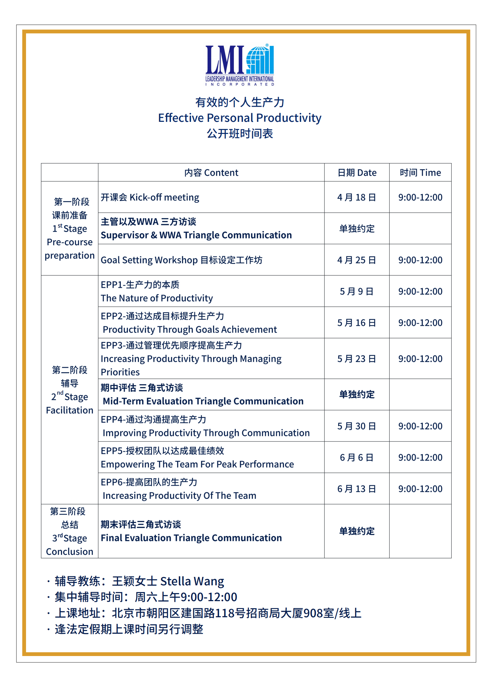 LMI 课程日期