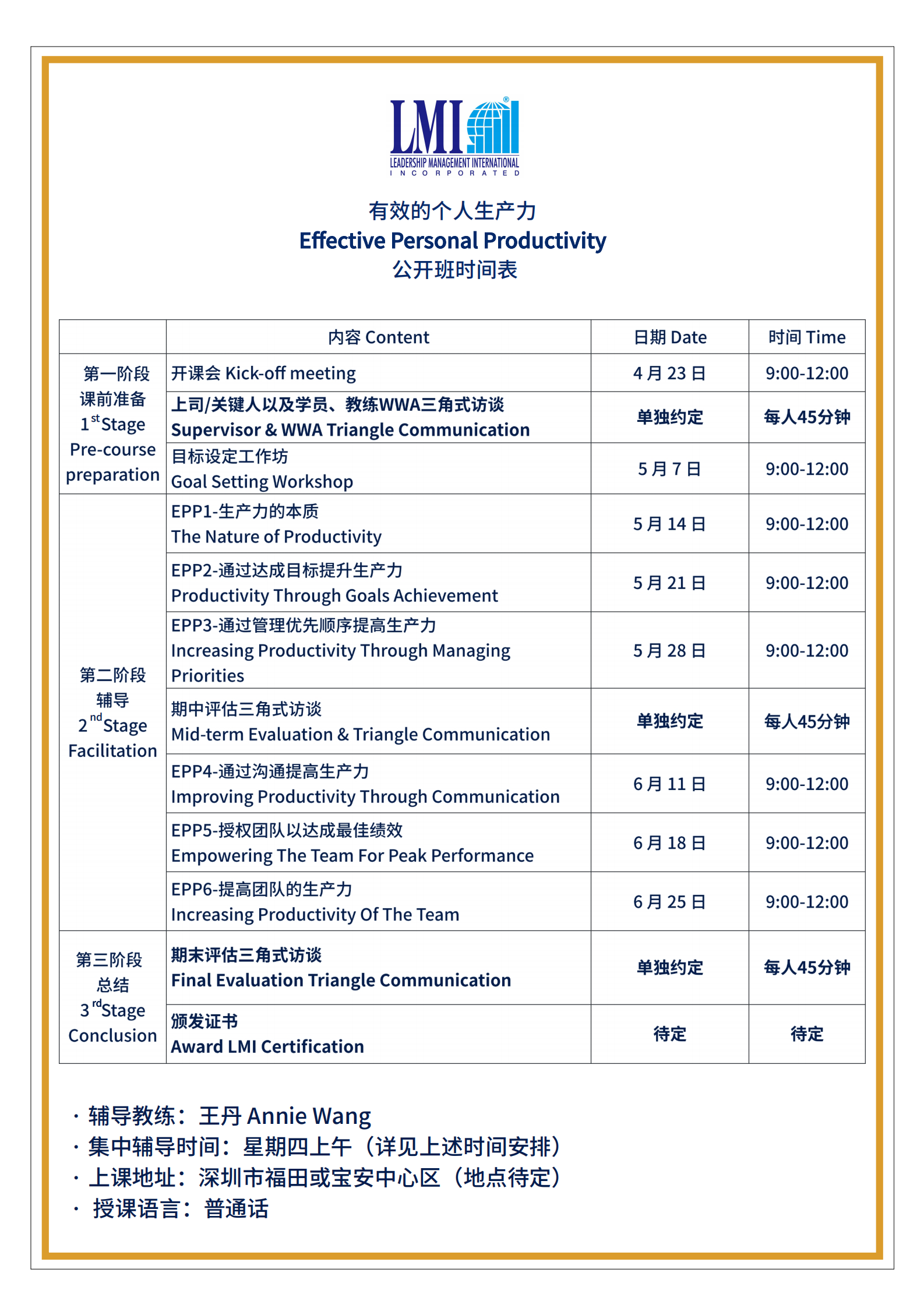 LMI 课程日期