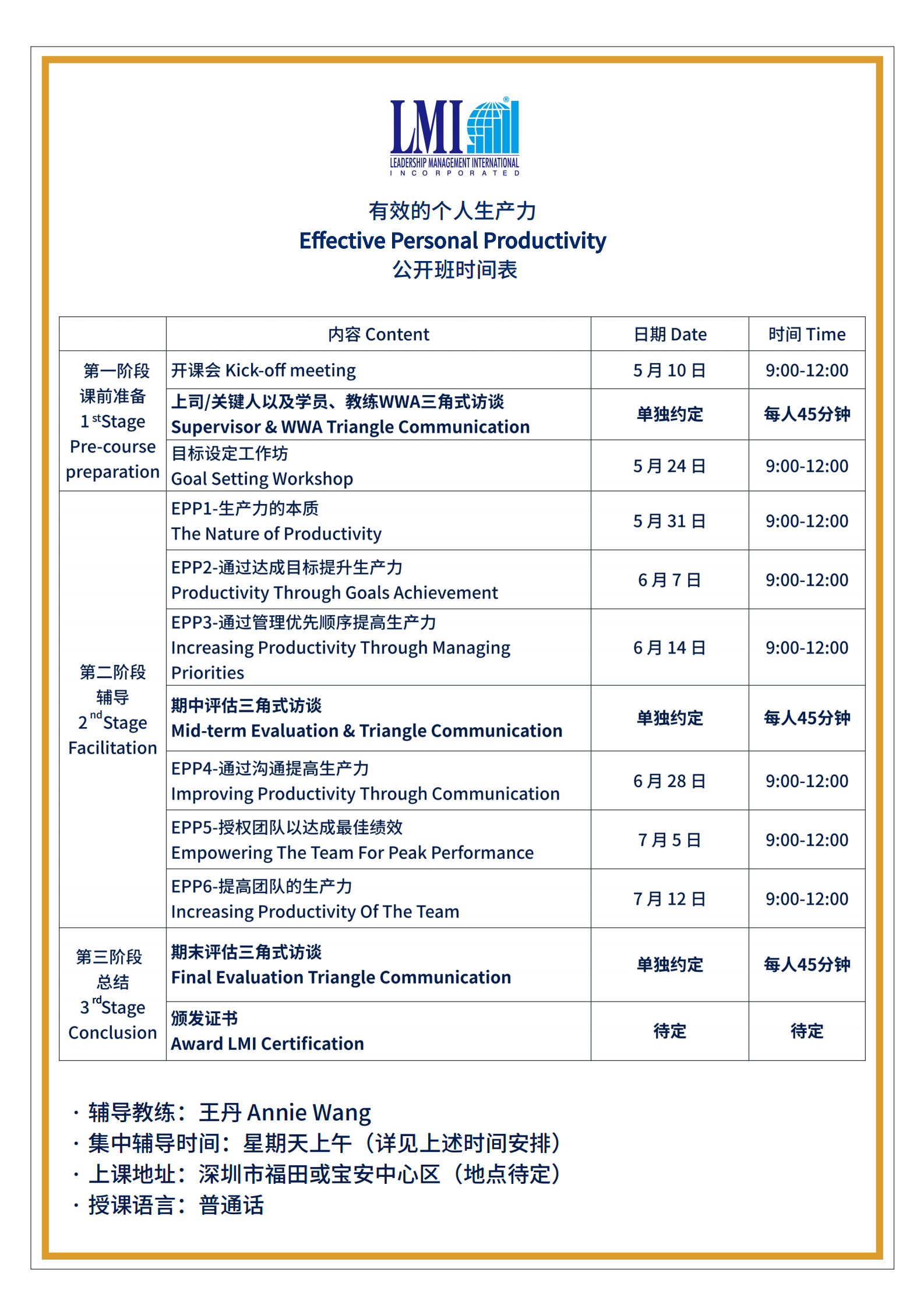 LMI 课程日期