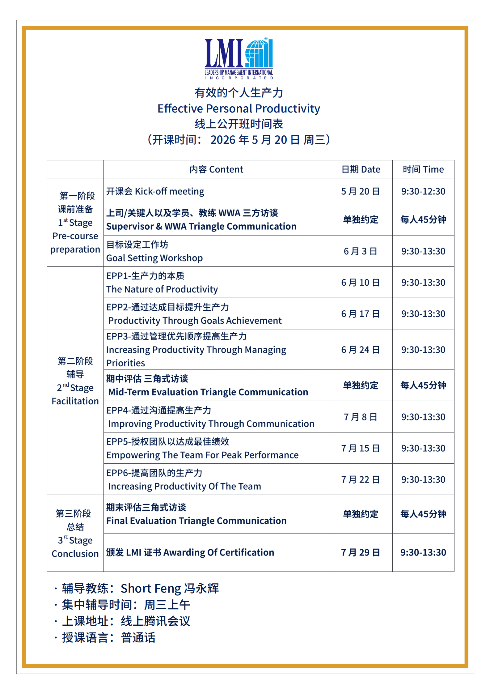 LMI 课程日期