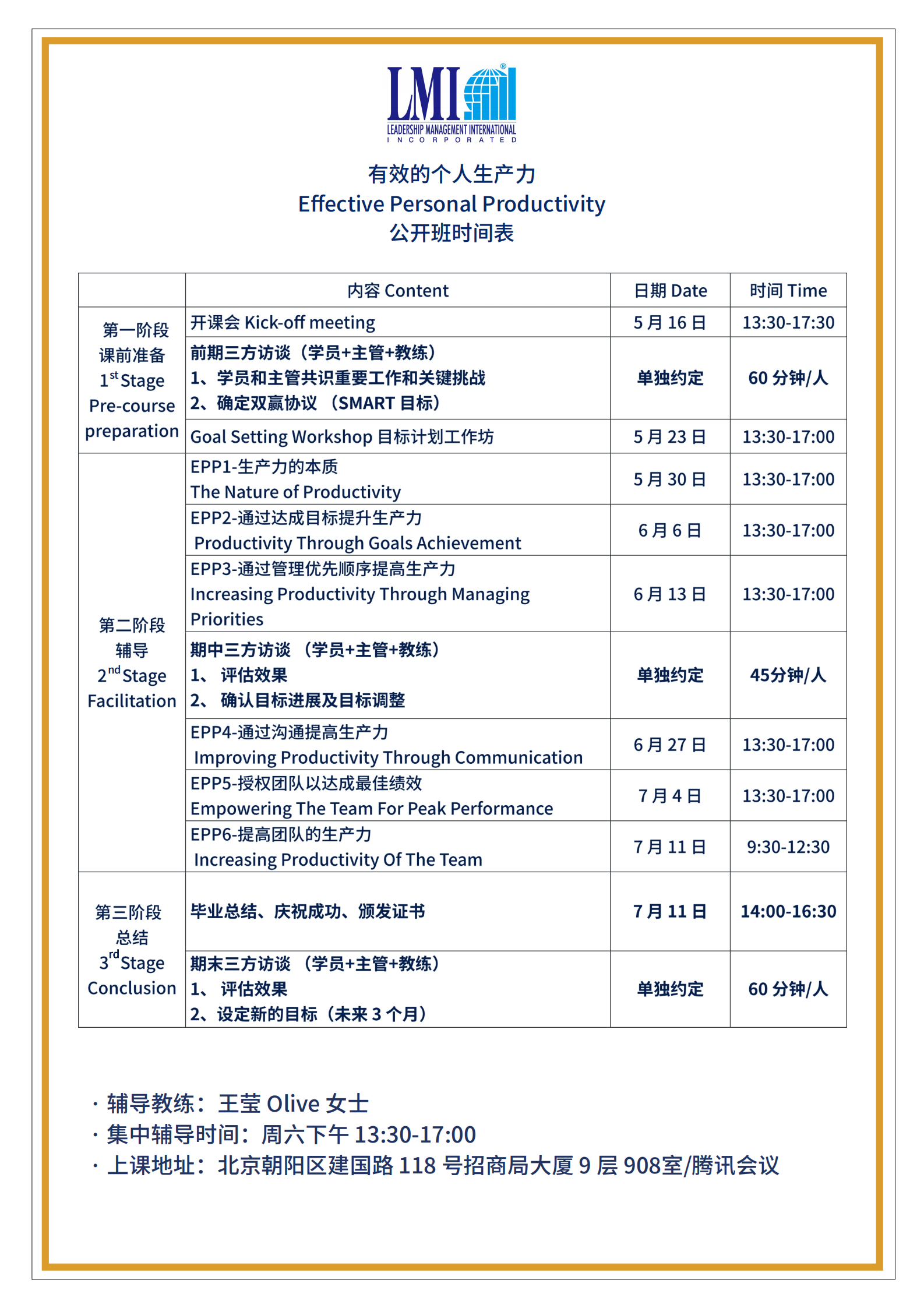 LMI 课程日期