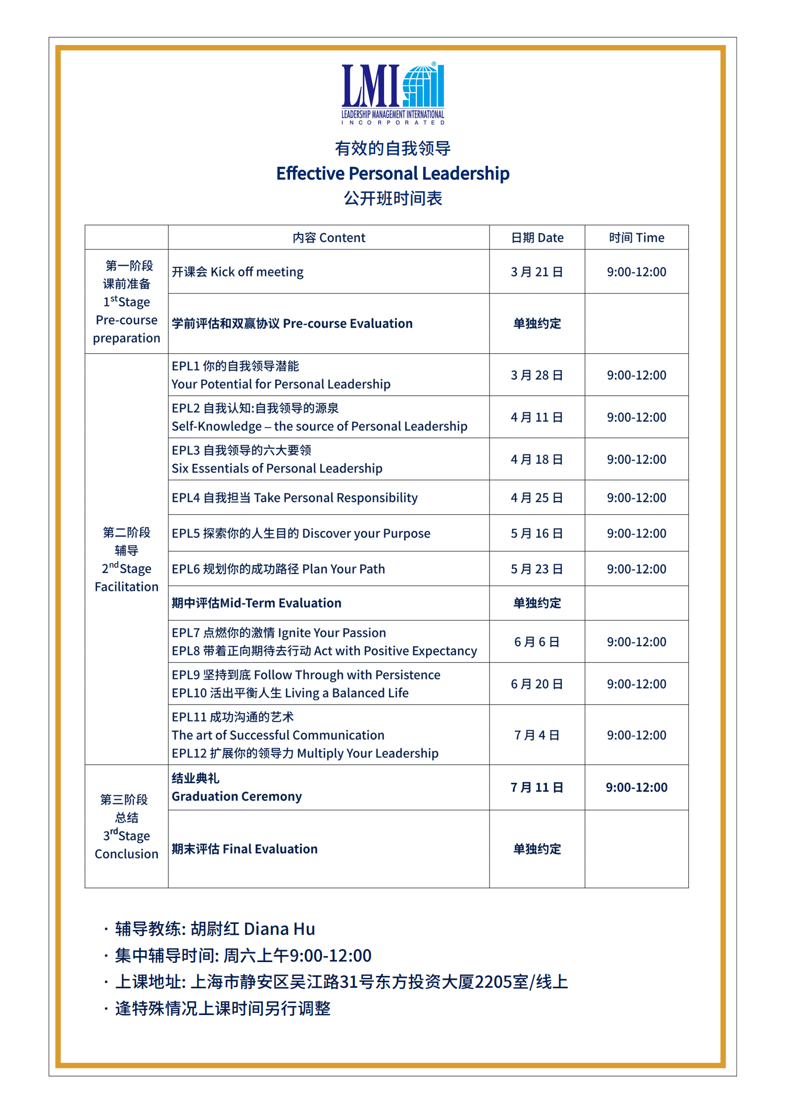 LMI 课程日期