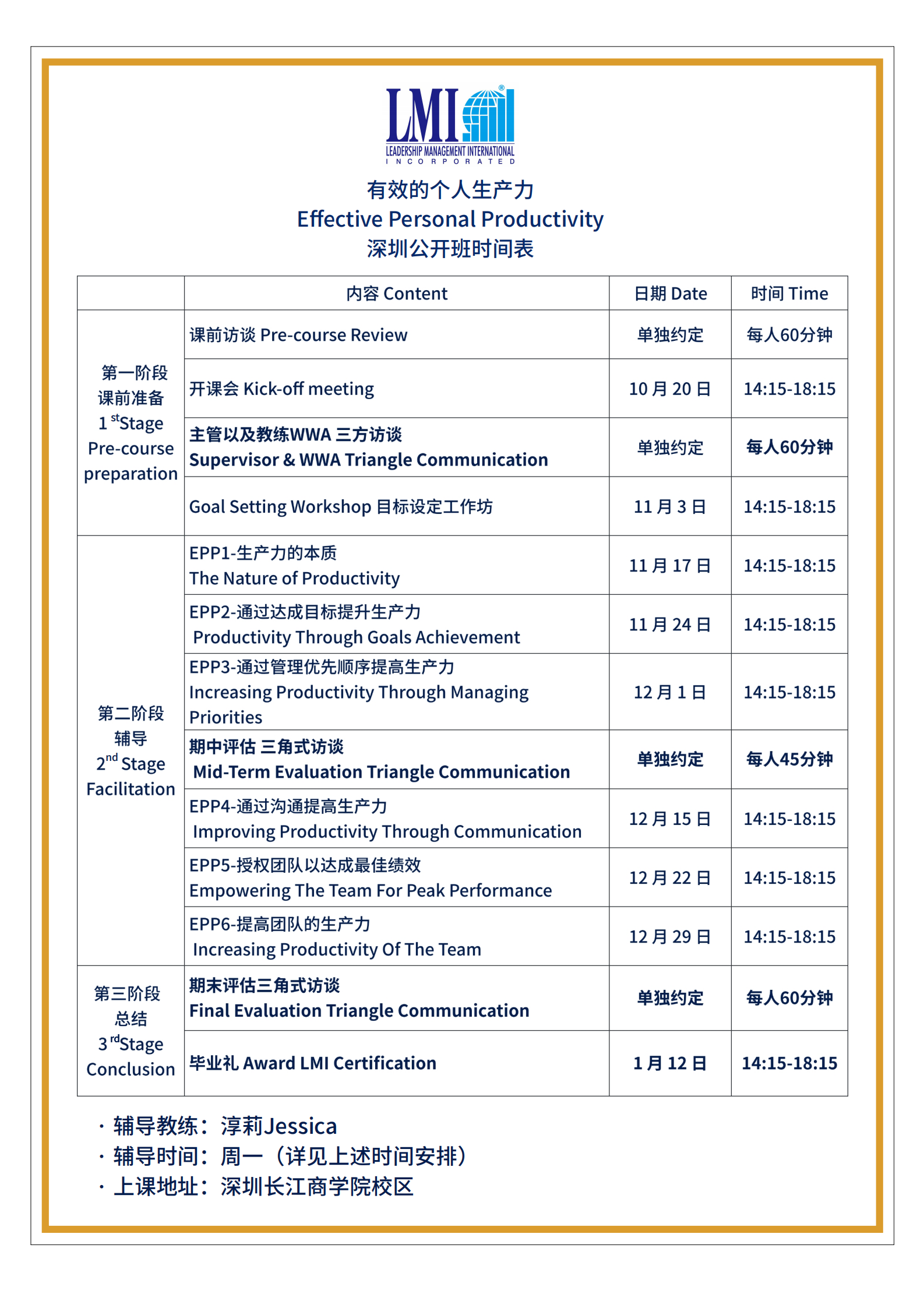 LMI 课程日期