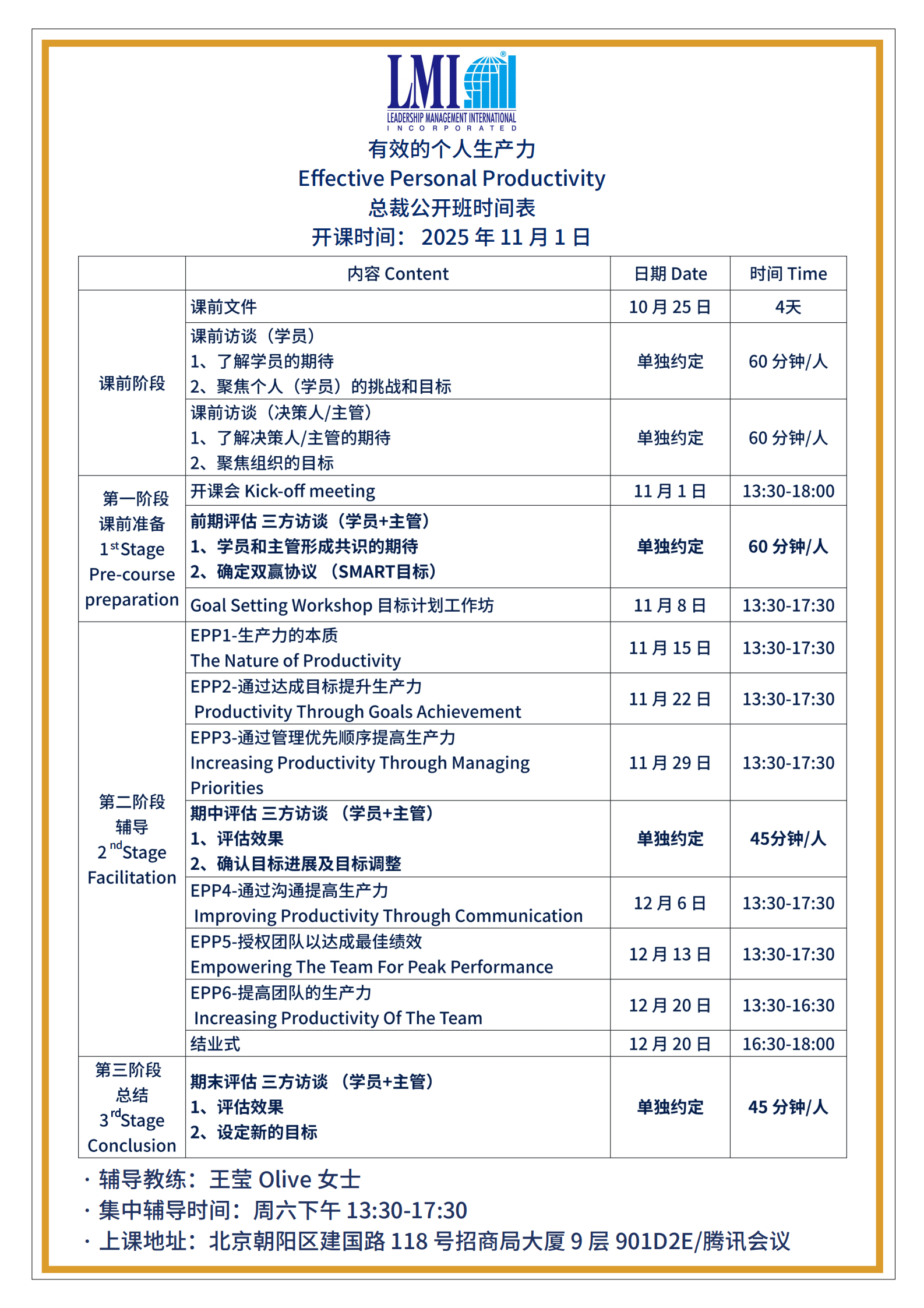 北京/线上 2025年11月1日(六)EPP周末总裁班