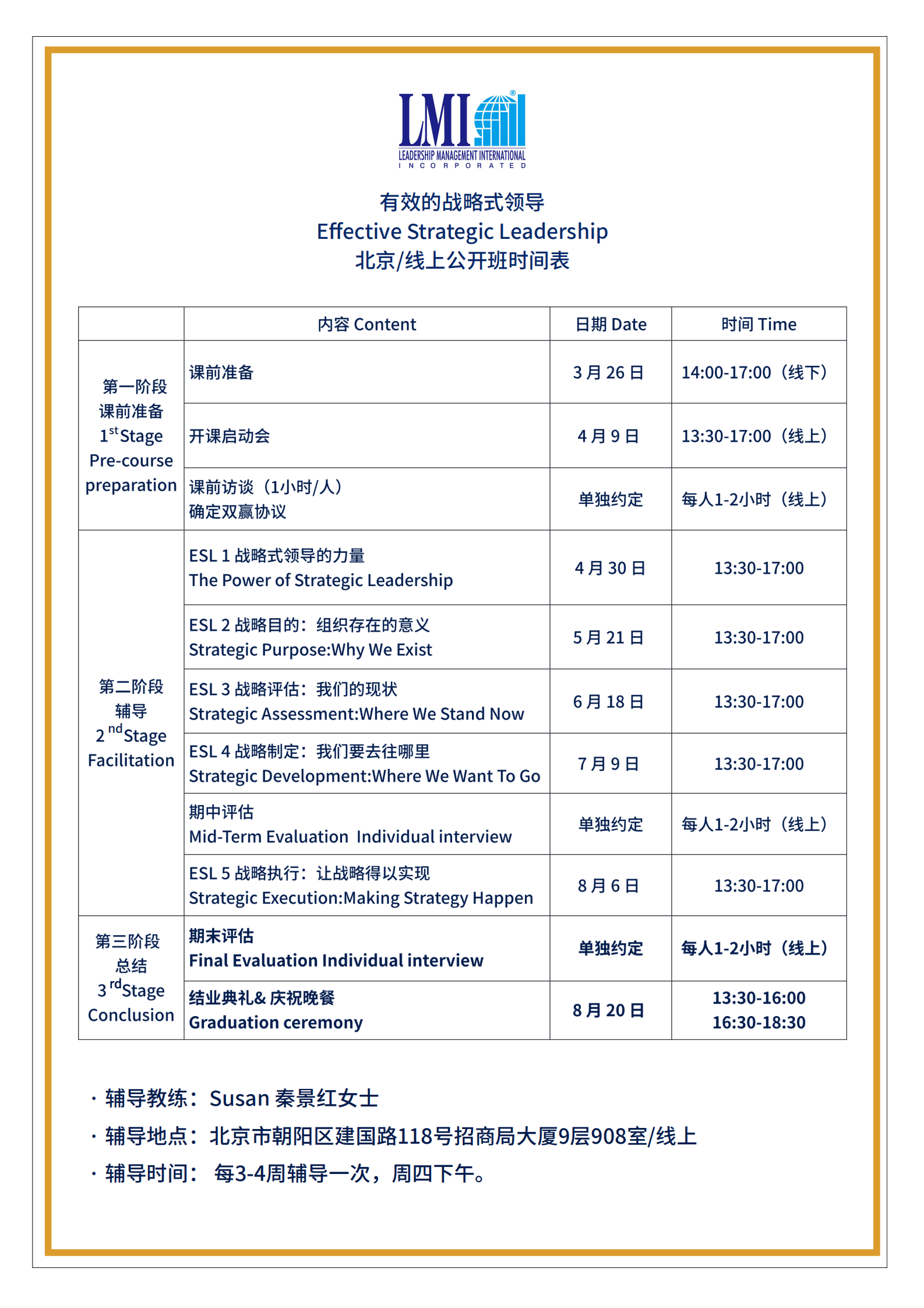 LMI 课程日期