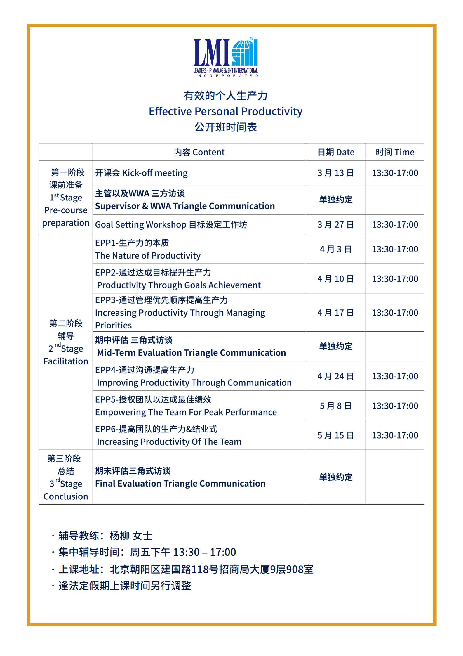 LMI 课程日期