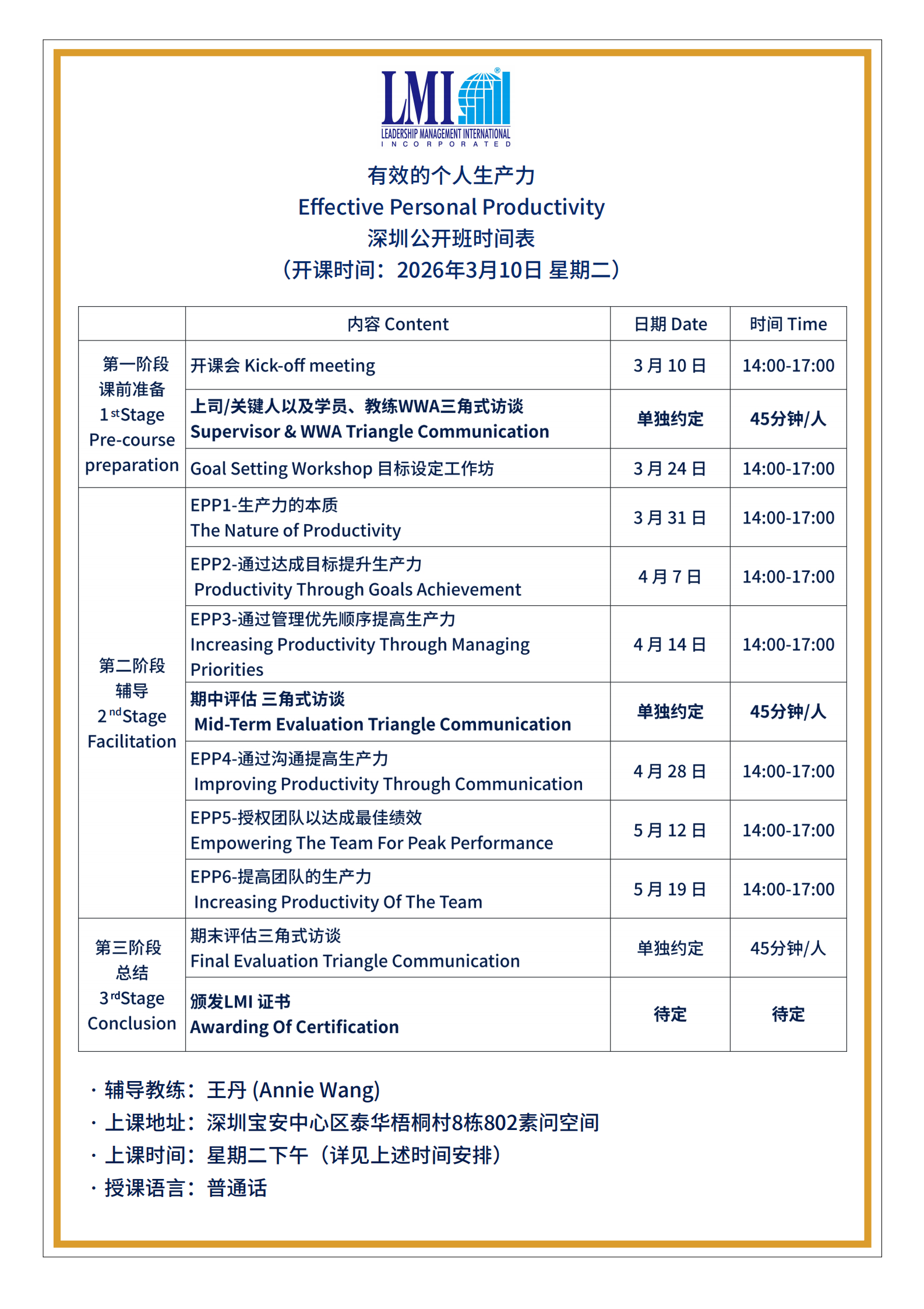 LMI 课程日期