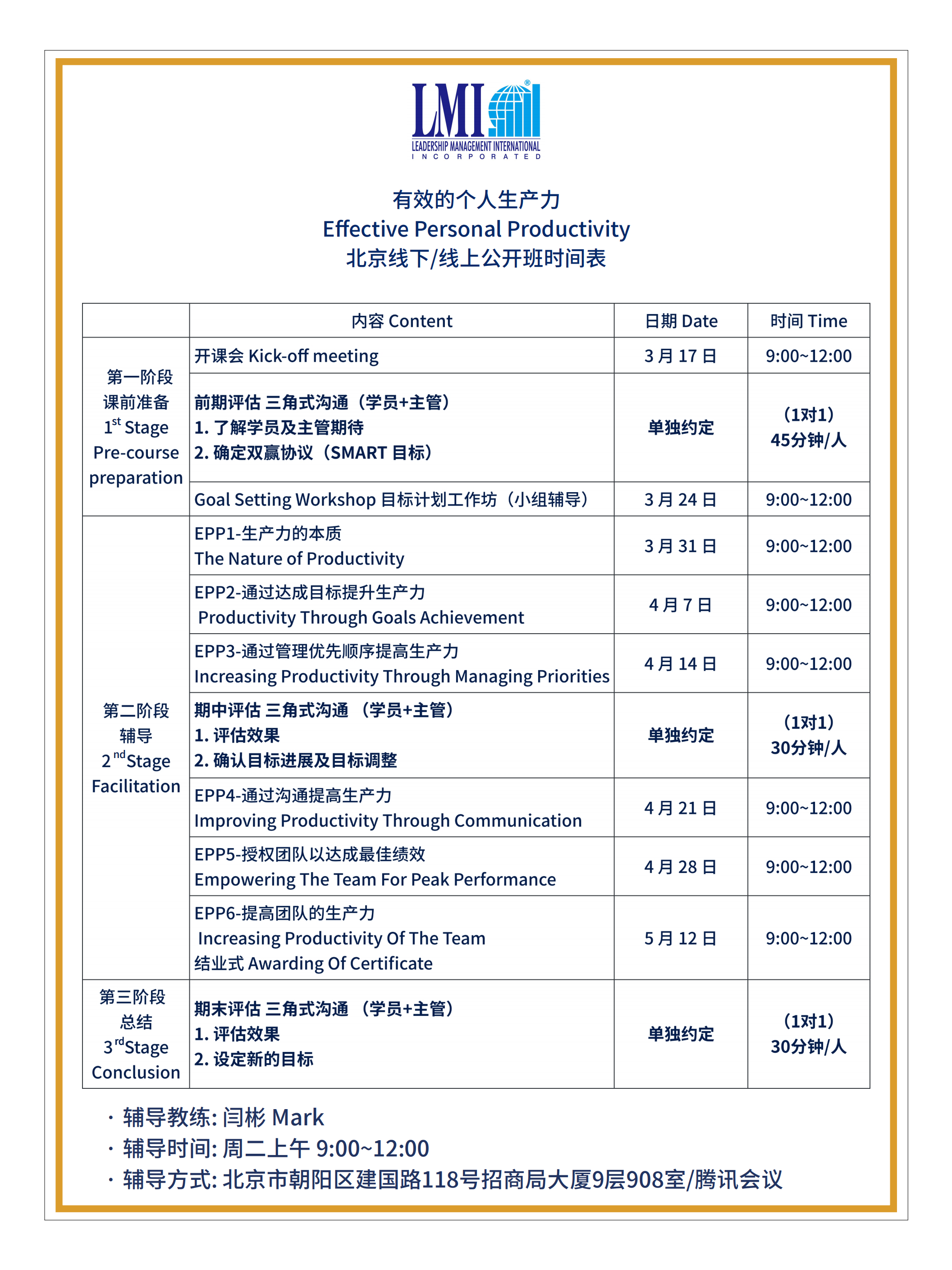 LMI 课程日期