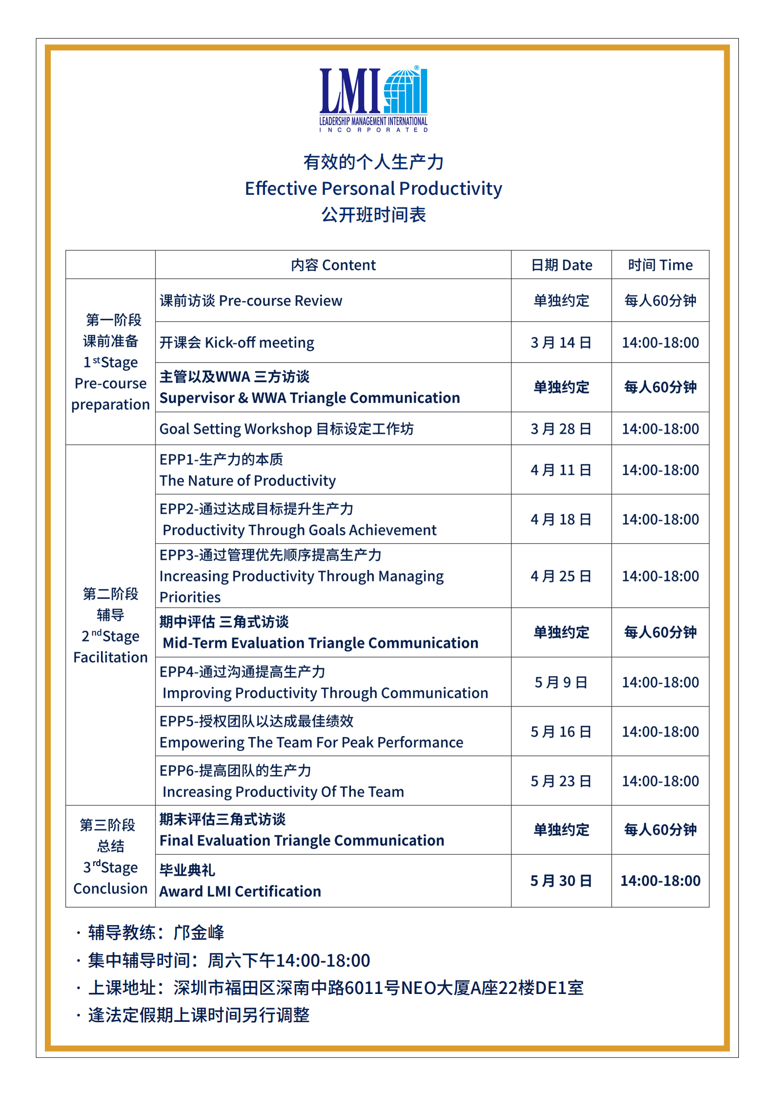 LMI 课程日期