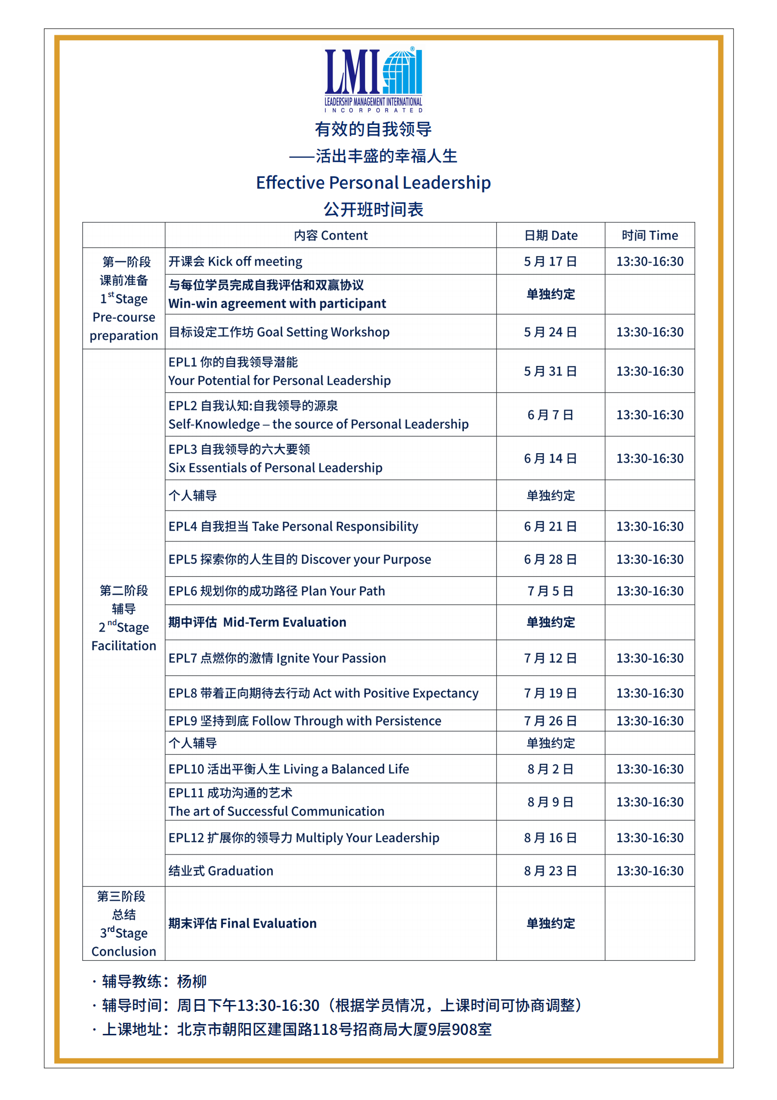 LMI 课程日期