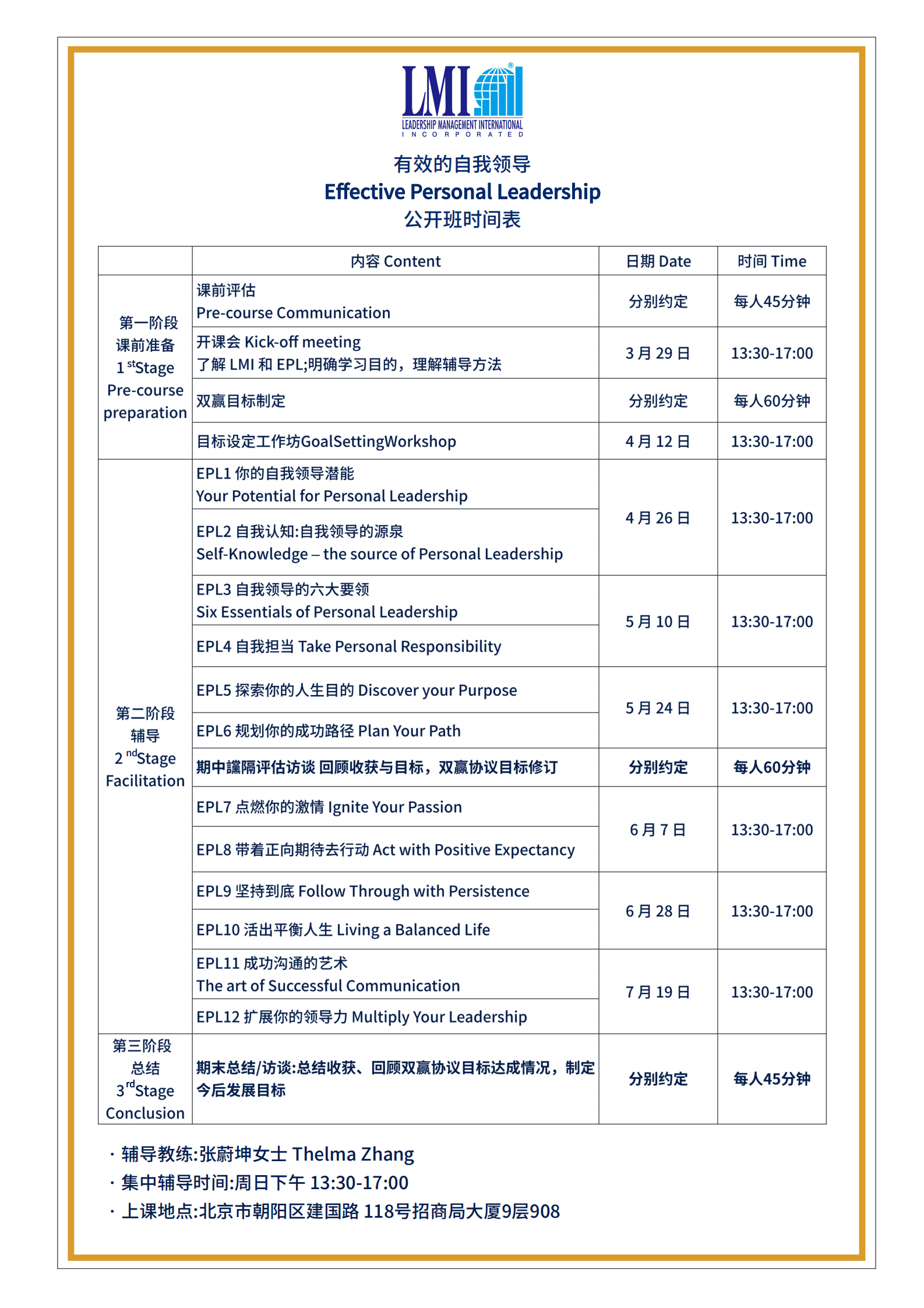 LMI 课程日期